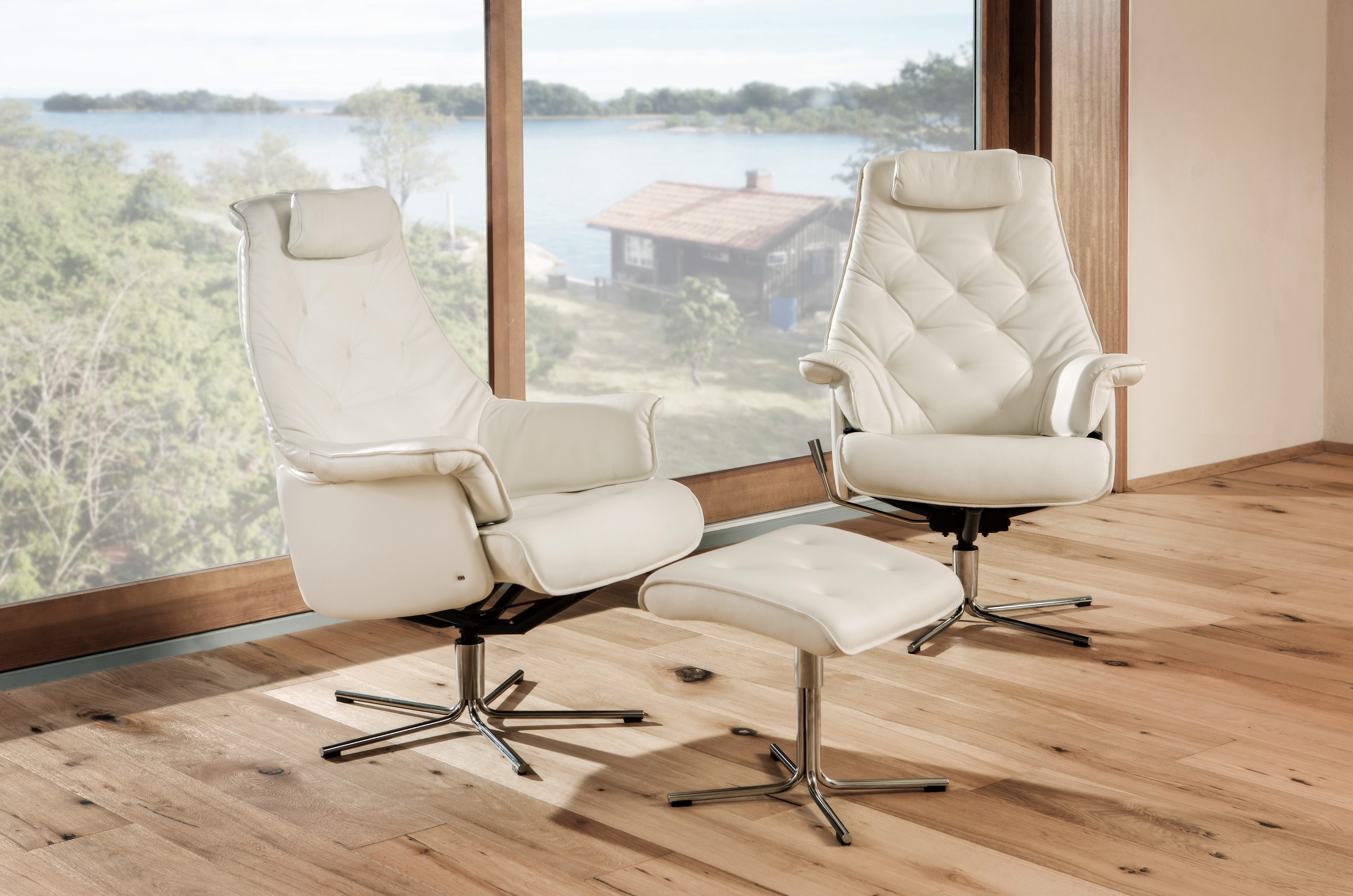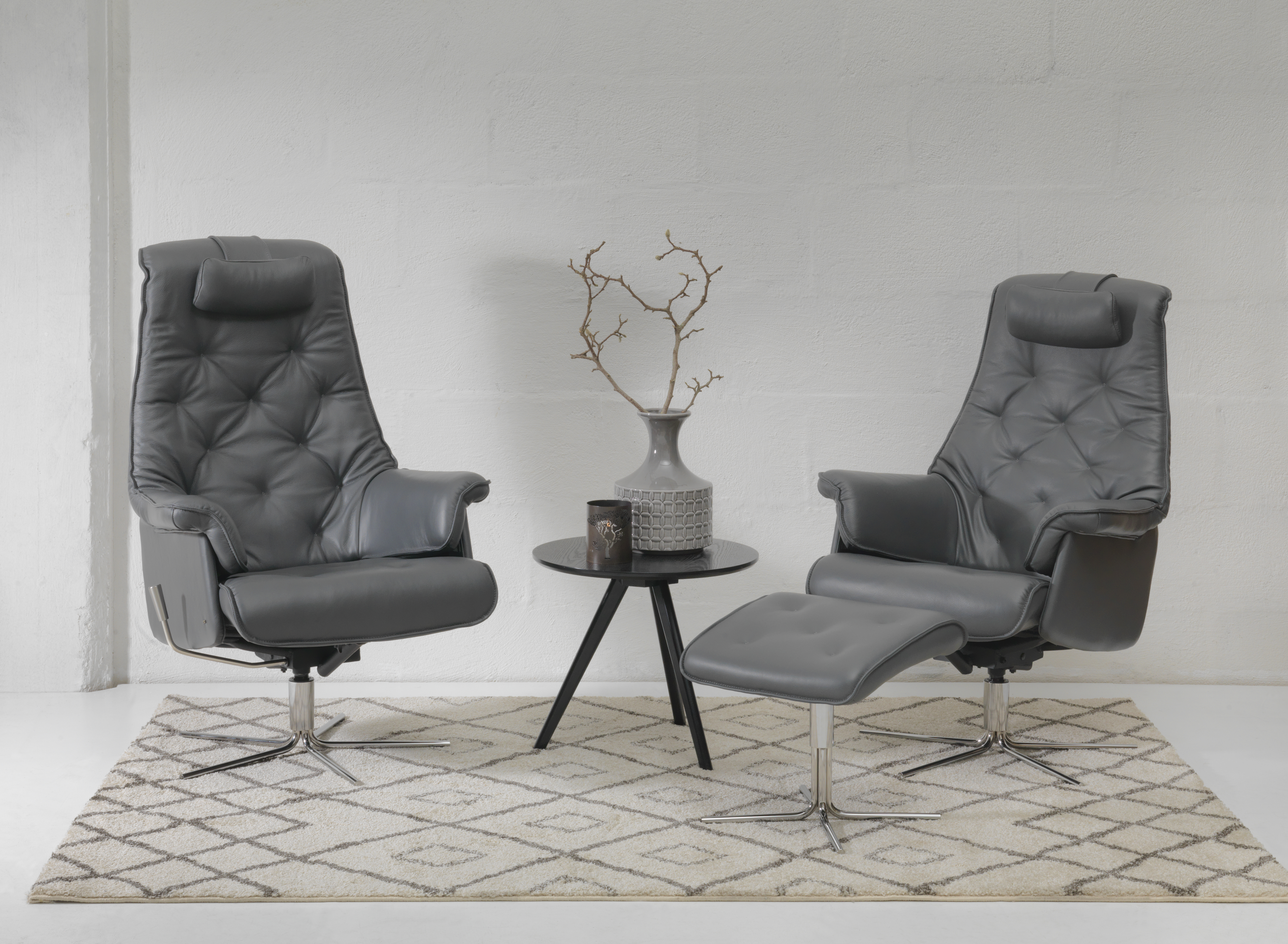 Frame: steel tube, no-sag springs; Cushions: cold cure PU-foam, polyester wadding