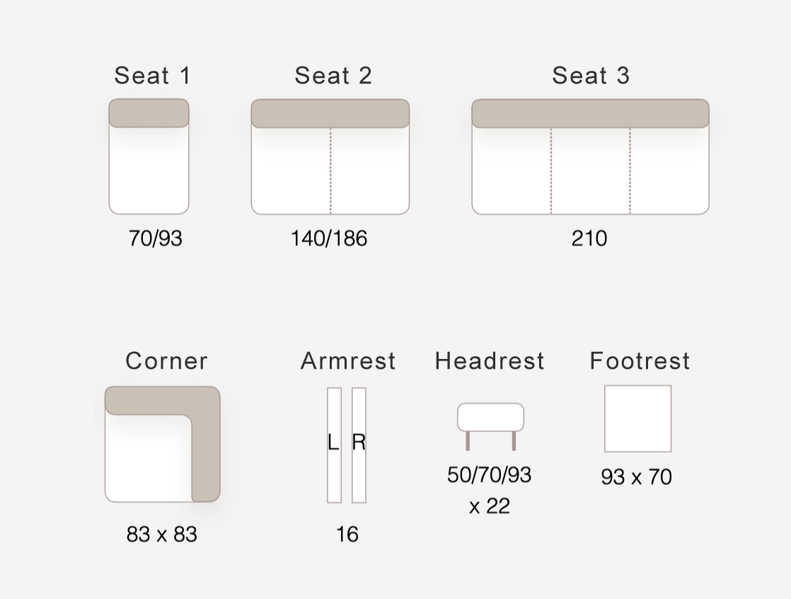 Frame: wood/plywood; seat: no-sag springs, foam HR 35/32kg 150N; back: polyester fiber.